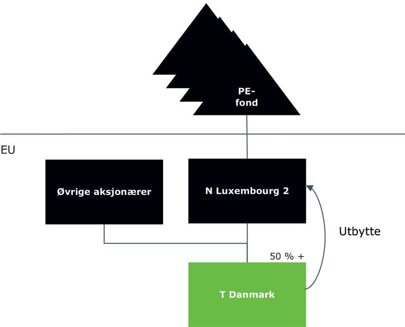 T Danmark gjaldt fem PE-fond hjemmehørende utenfor EØS som satte opp en rekke selskaper i Luxembourg, hvorav ett av disse, N Luxembourg 2, kjøpte over 50 % av aksjene i danske T Danmark.