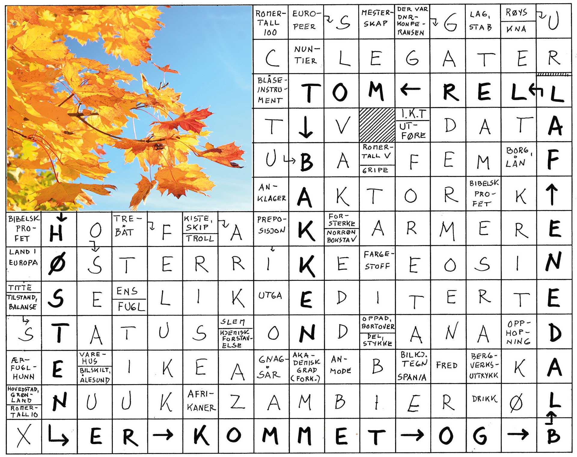 Løsning på kryssord side 13