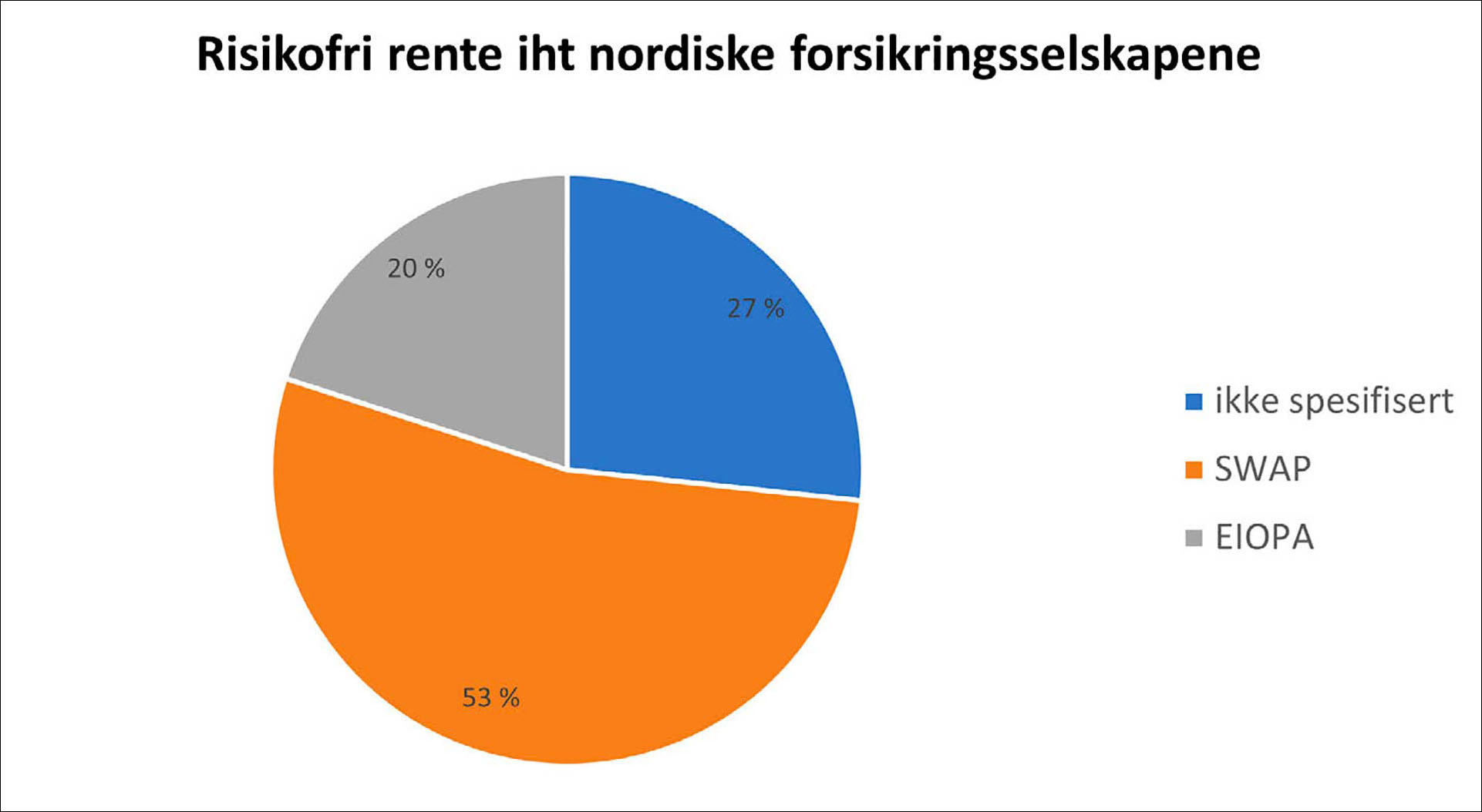 Tre av 15 i den nordiske undersøkelsen opplyste om anvendelse av EIOPA (The European Insurance and Occupational Pensions Authority) rente med eller uten volatilitetsjusteringer.