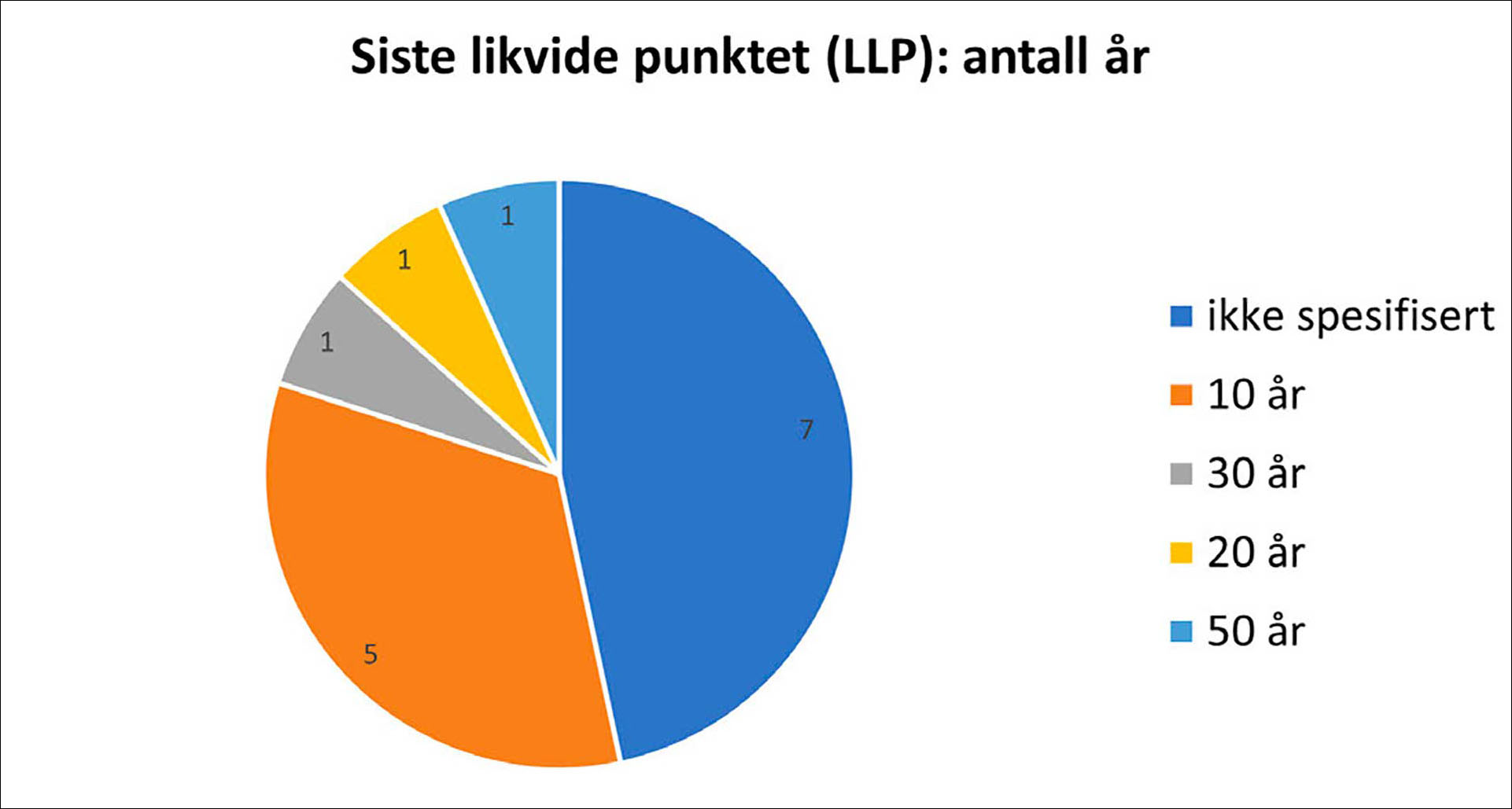 De fleste forsikringsselskapene unnlot å oppgi det siste likvide punktet (LLP) hvor de brukte observerbare markedsdata. De som gjorde det i den internasjonale undersøkelsen, brukte vanligvis 30 år som det siste likvide punktet for EUR og USD. I den nordiske undersøkelsen var den vanligste LLP på 10 år.
