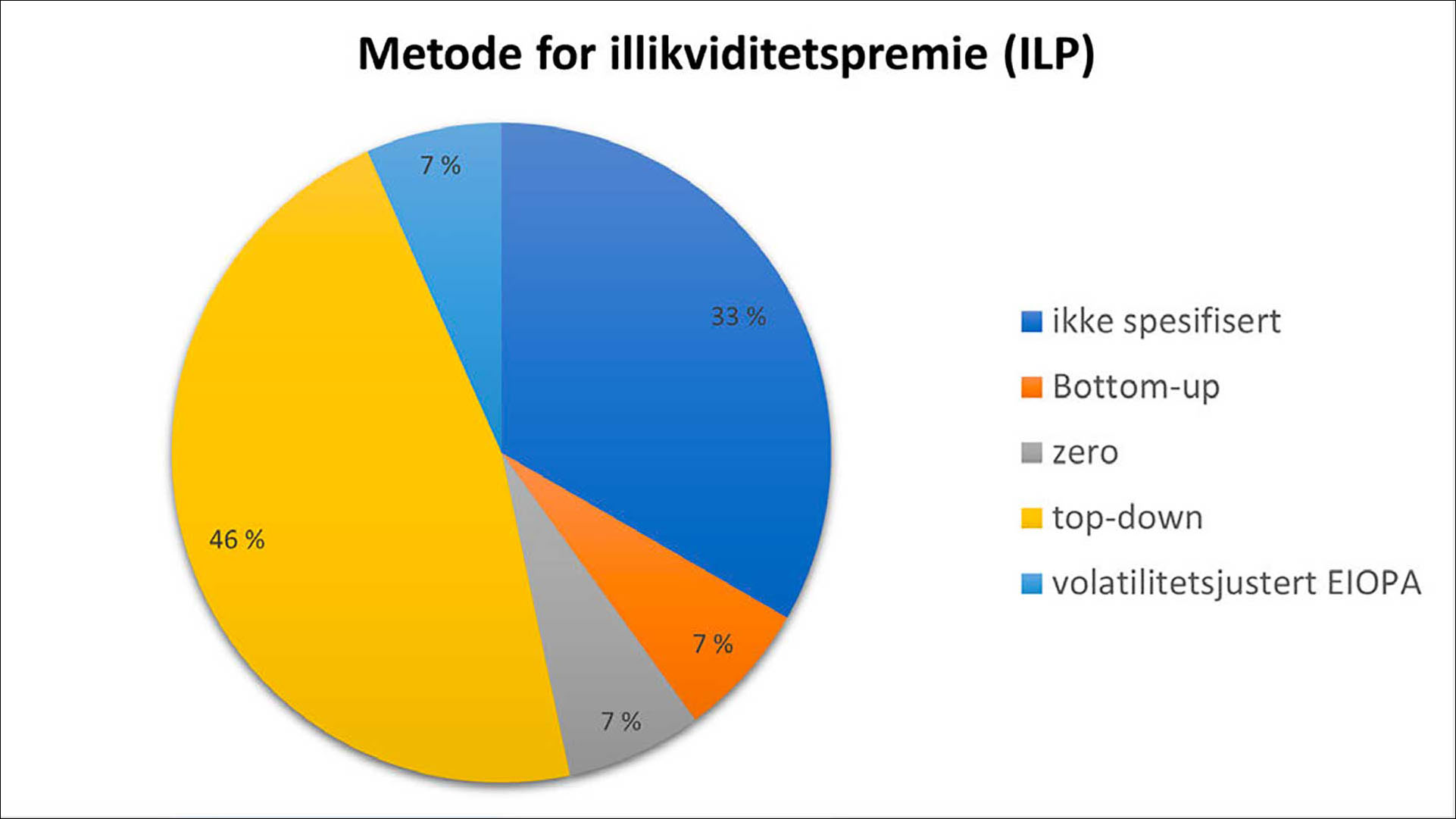 Alle de nordiske forsikringsselskapene har opplyst om benyttet bunn-opp-tilnærming og er beskrevet som å slå sammen risiko-fri rente og illikviditetspremie. De forsikringsselskapene som har gitt informasjonen om fastsettelse av illikvidtetspremier, har opplyst om bruk av topp-ned-tilnærming («top-down»).