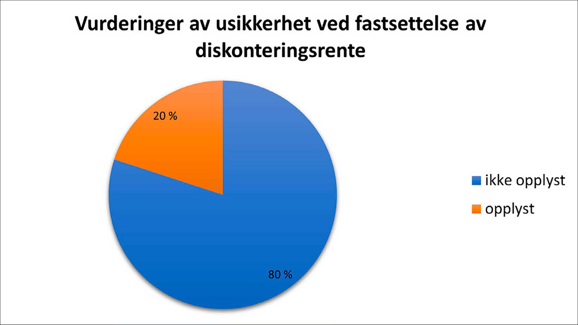 Som nevnt over er det få selskap som oppgir utfordringer ved estimeringsusikkerhet knyttet til fastsettelse av en relevant diskonteringsrente, og tilnærmingene som selskapene anvender til å adressere usikkerheten.
